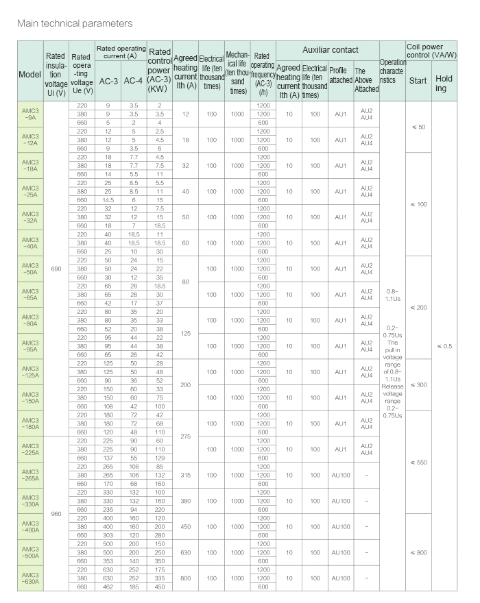 contactor is widely used, but is has the shortcomings of being noisy, high power consumption, heating emitted by the coil and core etc.. The intelligent anti-shaking permanent magnet contactor has successfully solved many shortcomings of the traditional electromagnetic A contactor, and has been widely used in the power switching and circuit control. AM series products have the advantages of energy-saving, anti-shaking, long life, etc.; it does not only have excellent performance, but also has extensive use value. AMC3 Permanent magnet energy-saving AC contactor is mainly used for AC 50Hz, 60Hz, rated working voltage to rated voltage to 690V;in the power system, it is responsible for turning on and off the circuit for remote switch on and off the circuit, frequent start and control of the motor.